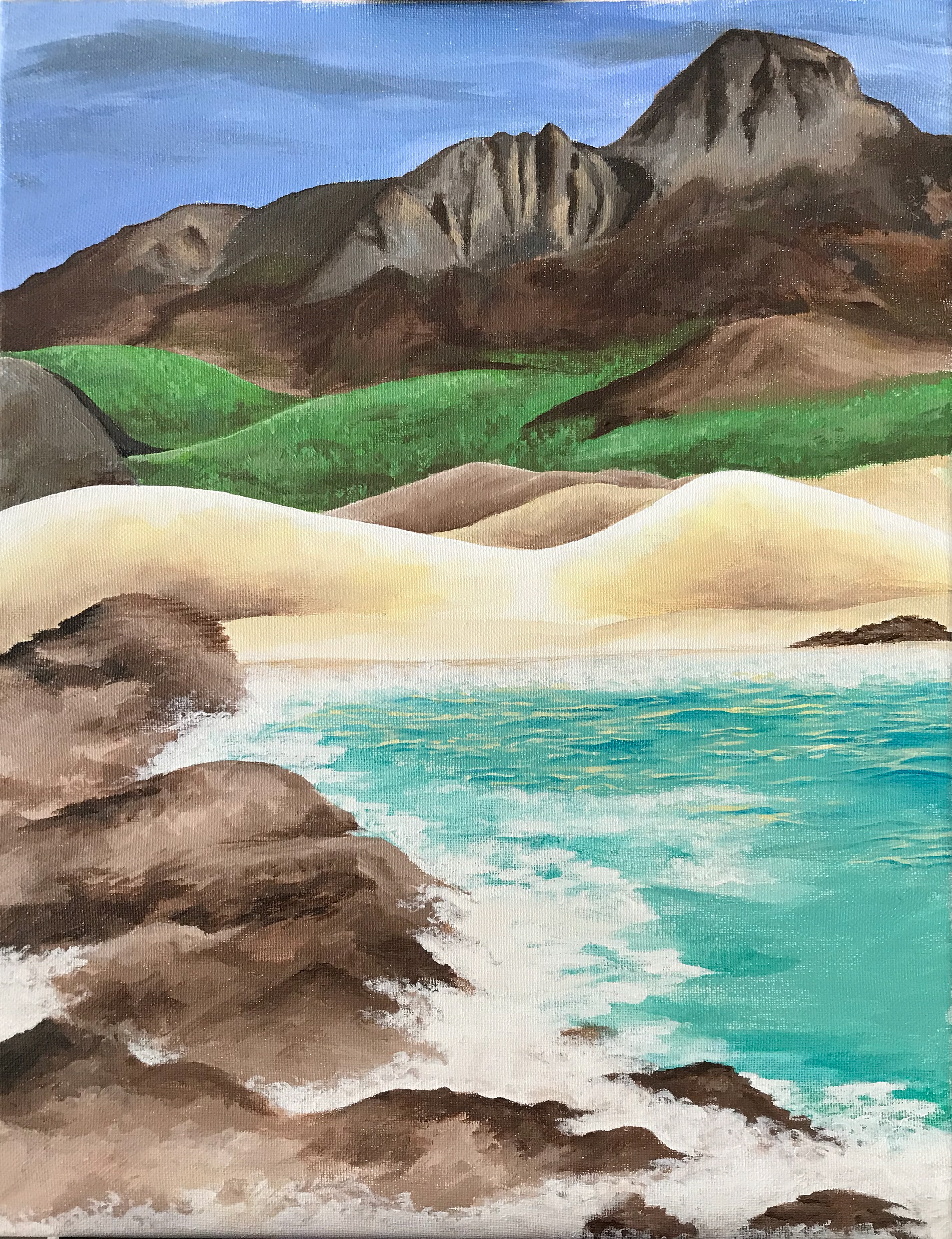 This painting, based on a photo I took in Scotland, was a way for me to practice acrylic on a view I remember so fondly, since I had little experience and the photo provided so many interesting colors and textures.