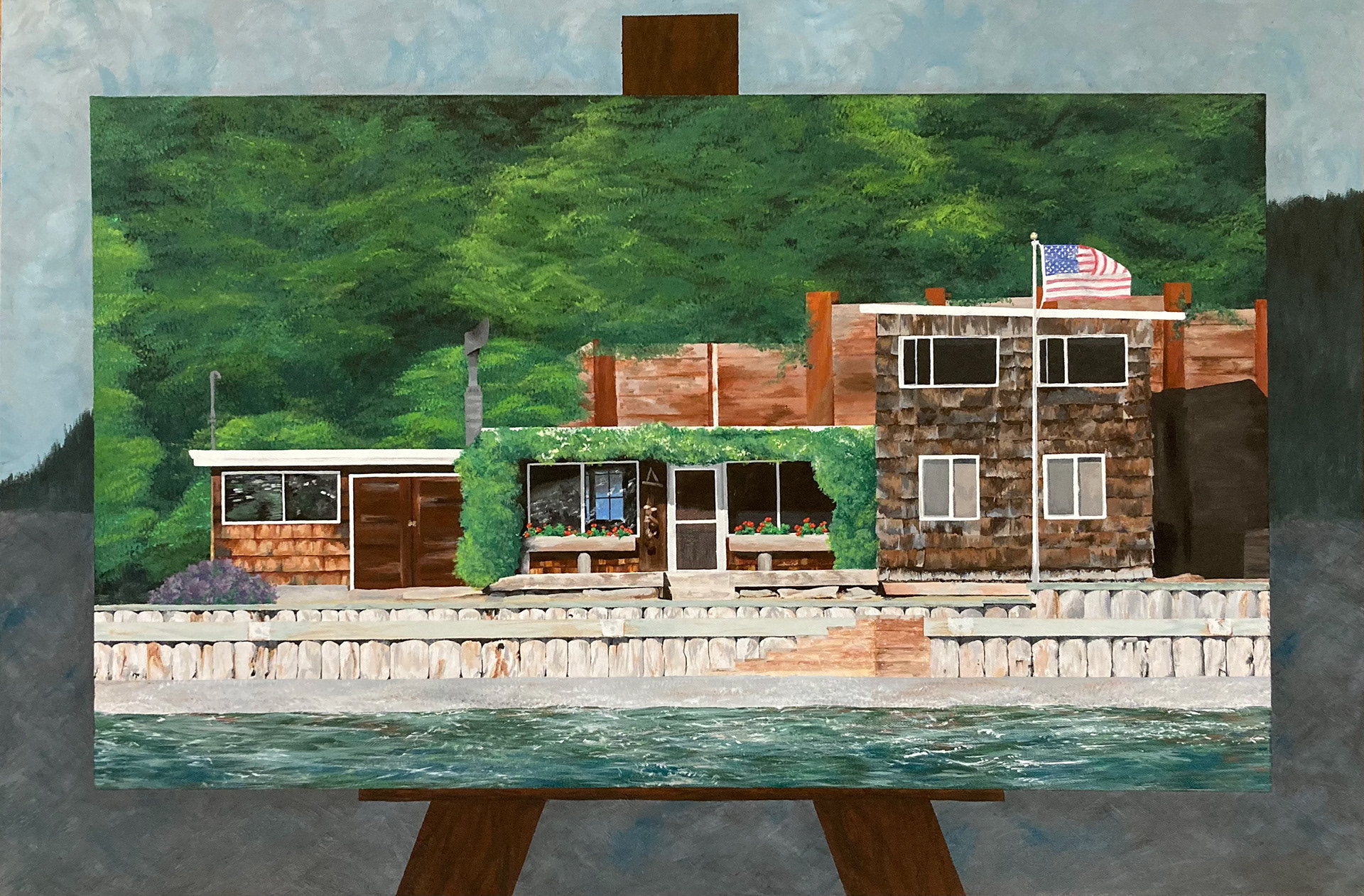 This is the largest painting I have ever done, and my favorite part was getting into the details to exactly depict each shingle, flower, and reflection, which I based off of a photograph.