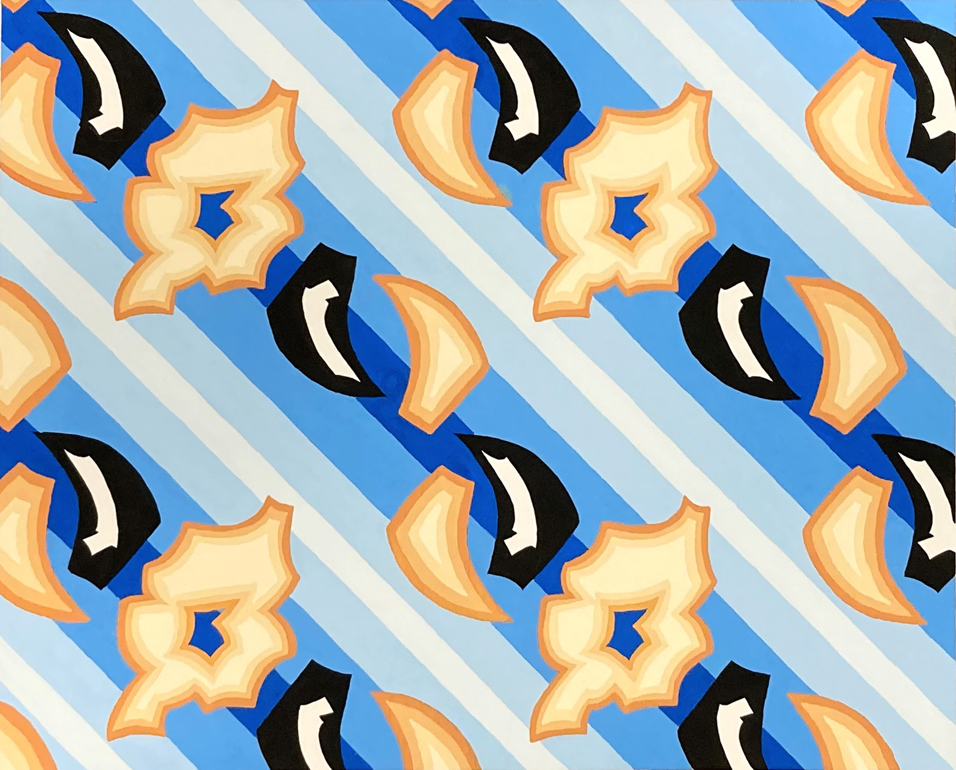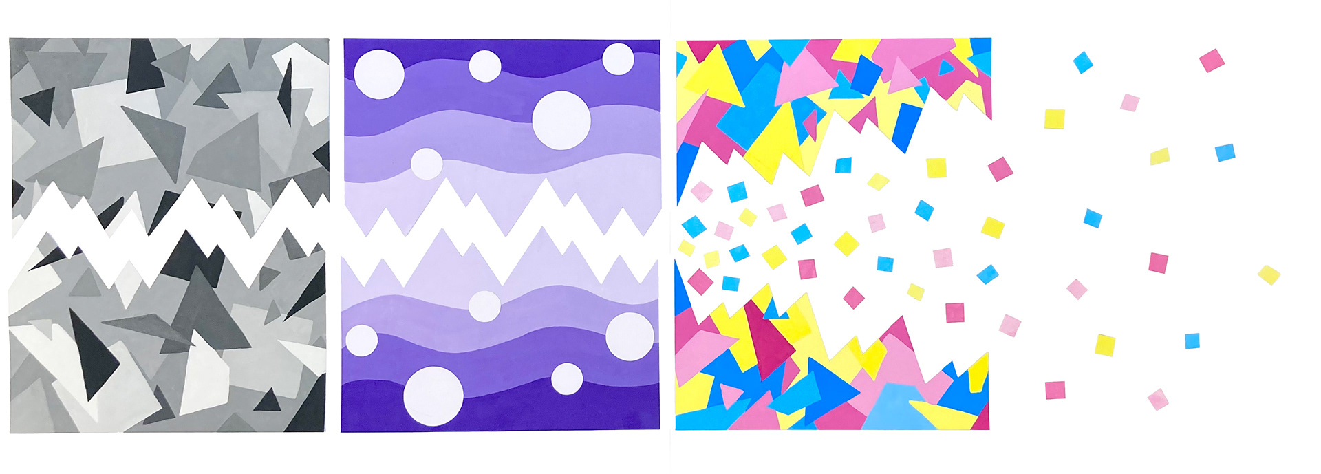 To study how patterns may be used, this assignment started by cutting out paper shapes, then arranging, tracing, and repeating to create a pattern we liked. This piece shows the precision and order seen in a lot of my work, and I have always loved the color scheme I chose.